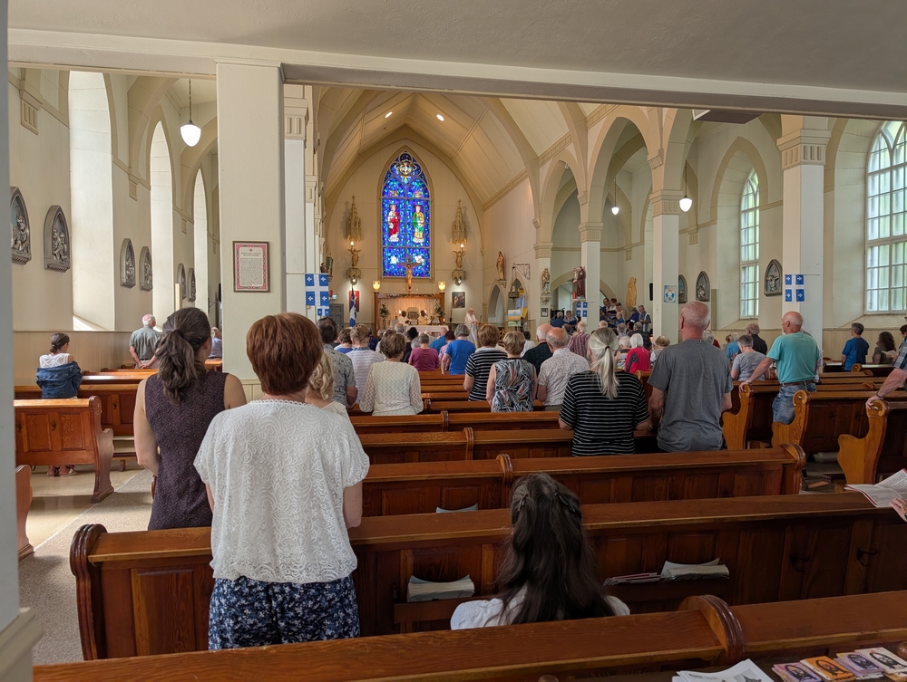 Le mardi 24 juin 2025, à l’église Saint-Élie-d’Orford, des paroissiens et des paroissiennes venus des divers horizons du Secteur pastoral de Bellevue se sont rassemblés pour célébrer la nativité de saint Jean-Baptiste et, par la même occasion, la fête nationale des Québécois et des Québécoises. La musique québécoise, le chant choral, les prières et la traditionnelle bénédiction des pains ont donné le ton à cette belle fête.