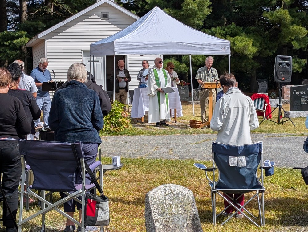 Le dimanche 31 août 2025, la communauté chrétienne s’est réunie au cimetière Saint-Élie pour vivre un moment de foi et de prière en mémoire de nos défunts. Le père Jean-Claude Breton a présidé la célébration avec simplicité et profondeur. La Parole de Dieu de ce dimanche a été commentée par M. Jean Bossé, invitant chacun et chacune à prendre conscience de l’héritage social et spirituel de ceux et celles qui nous ont précédés. L’animation de la messe, assurée par MM. Jean Paré et Jean Bossé, a permis à l’assemblée de participer avec ferveur à cette liturgie vécue dans la paix et la communion.