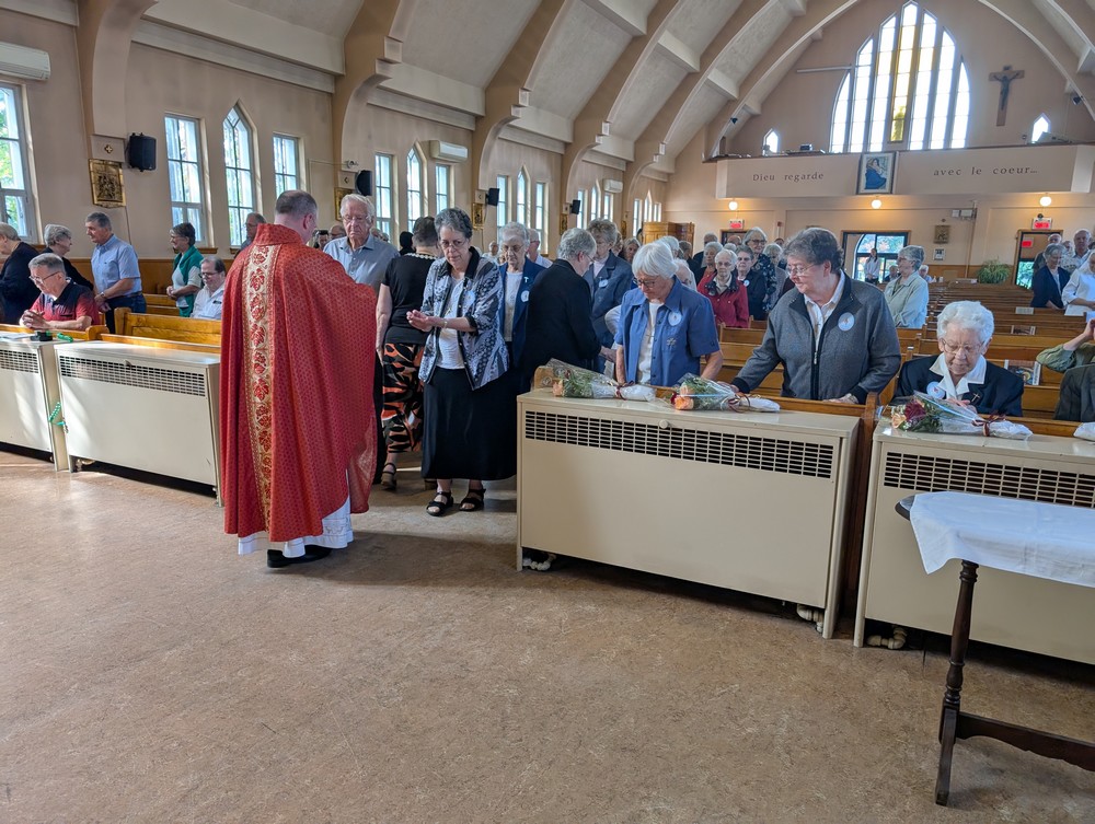 La célébration, présidée par le vicaire général, Steve Lemay, fut marquée par un hommage touchant offert par M. Guy Bédard et par le chant de l’assemblée guidé avec entrain par Mme Lucie Grenier. Après la messe, un temps fraternel s’est poursuivi autour d’une collation conviviale.